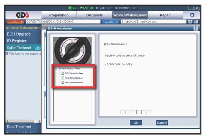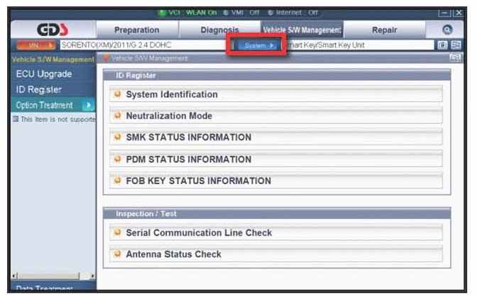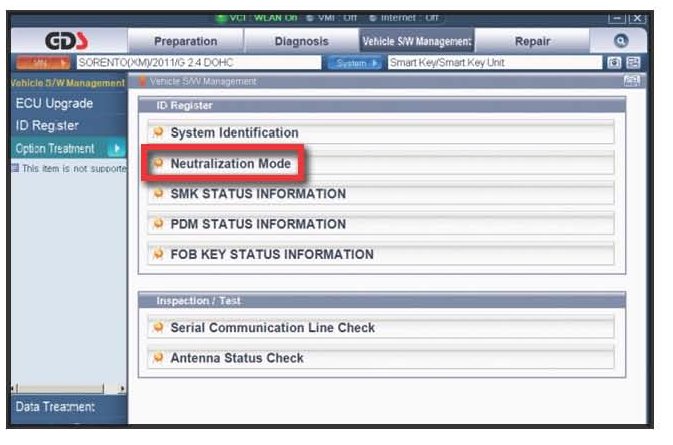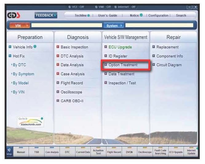 1. Connect GDS to vehicle and select Option Treatment.
