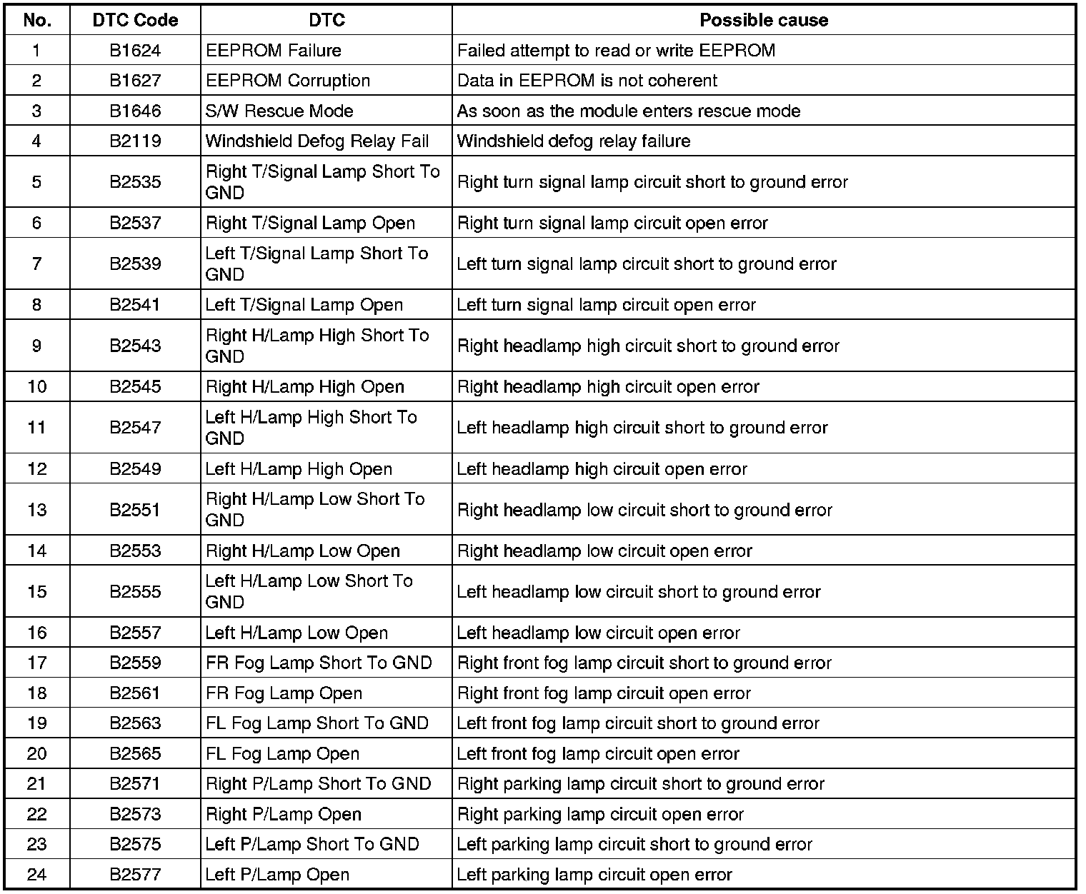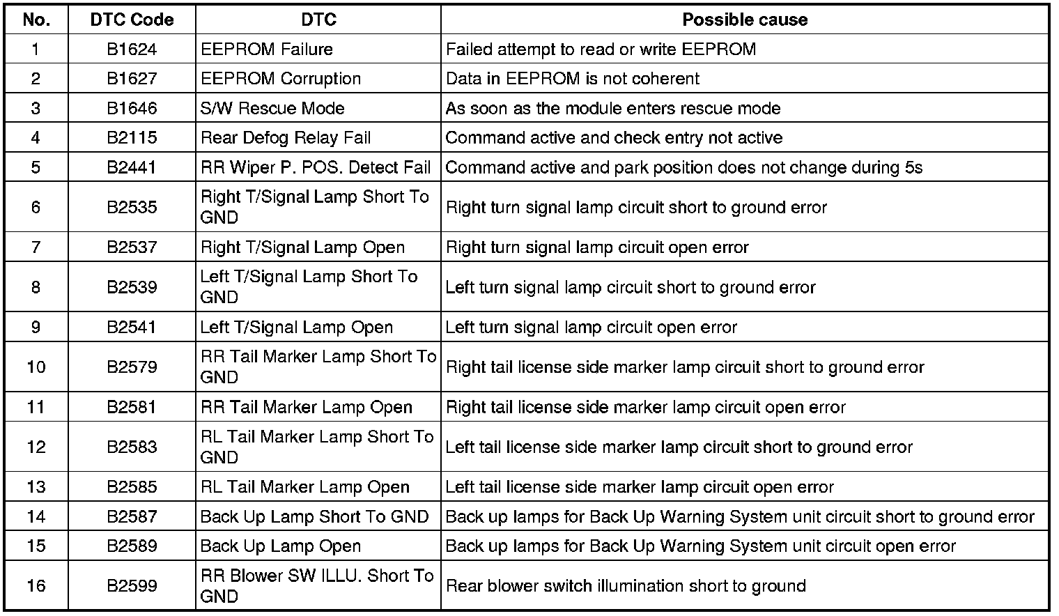 SCM DTC List