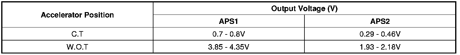 2. Start engine and check output voltages of APS 1 and 2 at C.T and W.O.T.