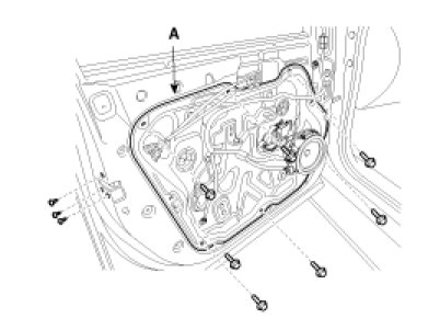 3. Loosen the door module mounting bolts, remove the door module (A).