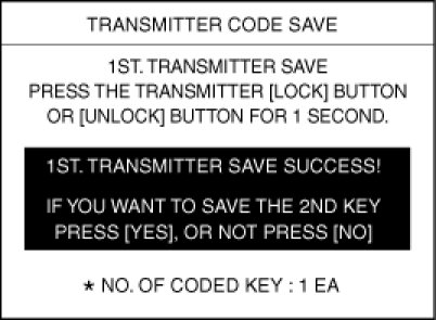 4. After removing the ignition key from key cylinder, push "ENTER" key to proceed to the next mode for code saving. Follow steps 1 to 4 and then code saving is completed.
