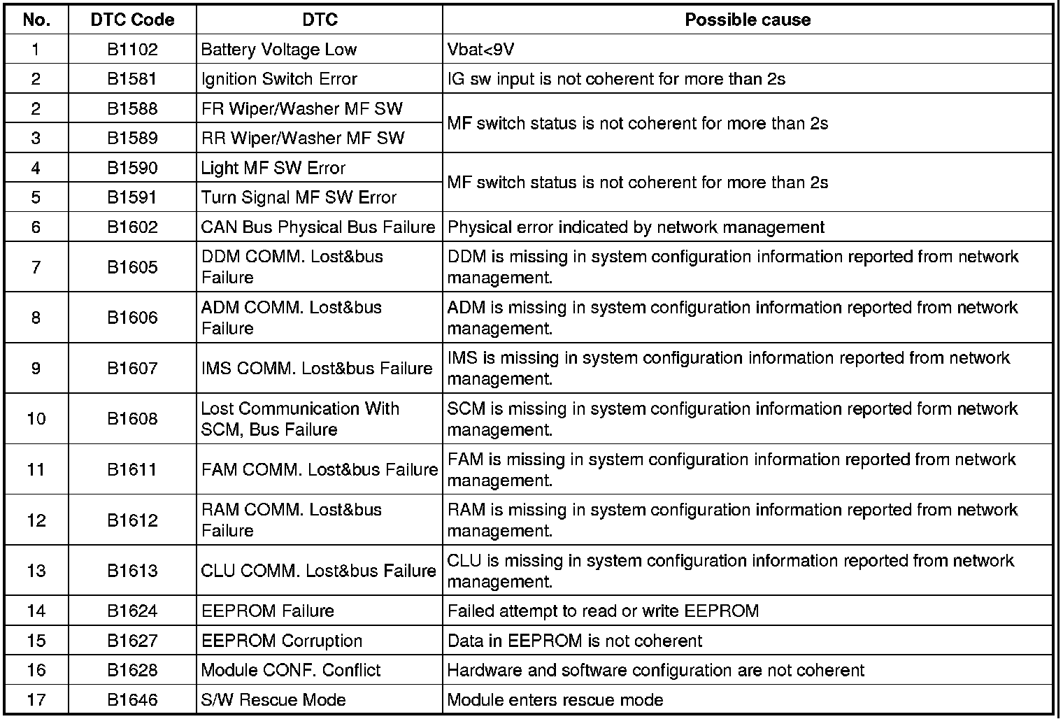 SCM DTC List