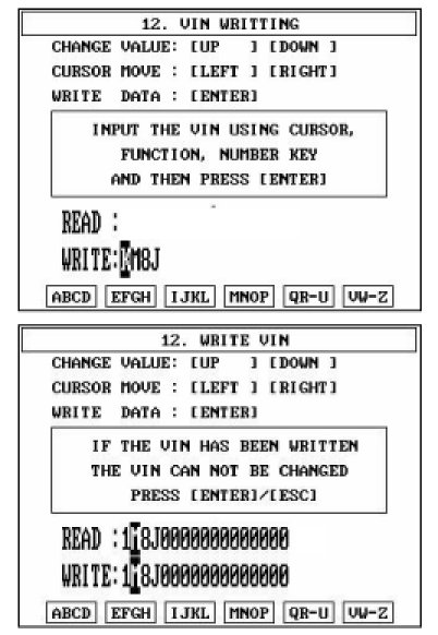 4. Write the VIN with cursor, function and number keys.
