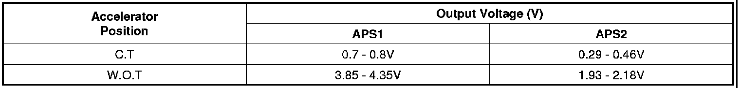 2. Start engine and check output voltages of APS 1 and 2 at C.T and W.O.T.