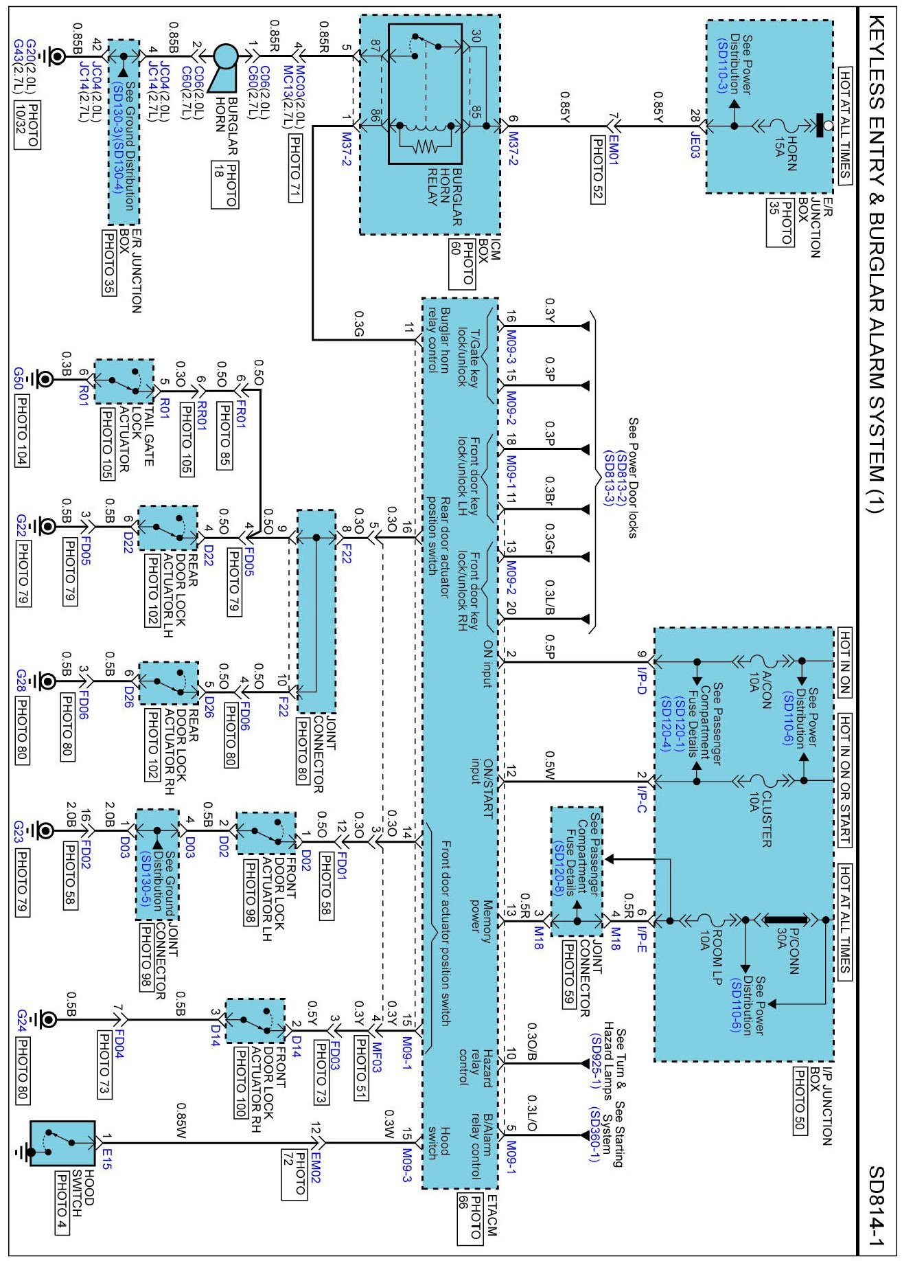 Locations: Location photographs (references to PHOTOS) referred to within these diagrams can be found via the photo number at the vehicle level under Locations by Photo Number. Component Locations