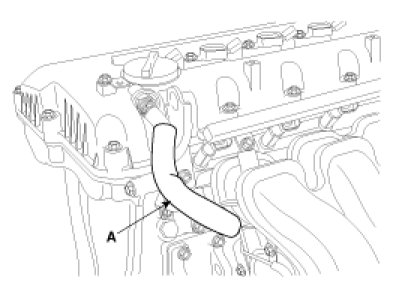 6. Disconnect the PCV (Positive crankcase ventilation) hose (A).