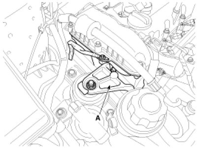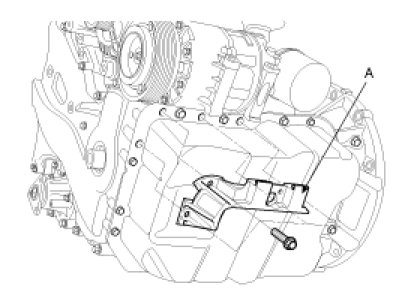 14. Disconnect the ground cable, and then remove the engine mounting bracket (A).