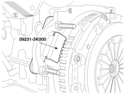- Install the SST (09231-3K000) to hold the ring gear after removing the starter.