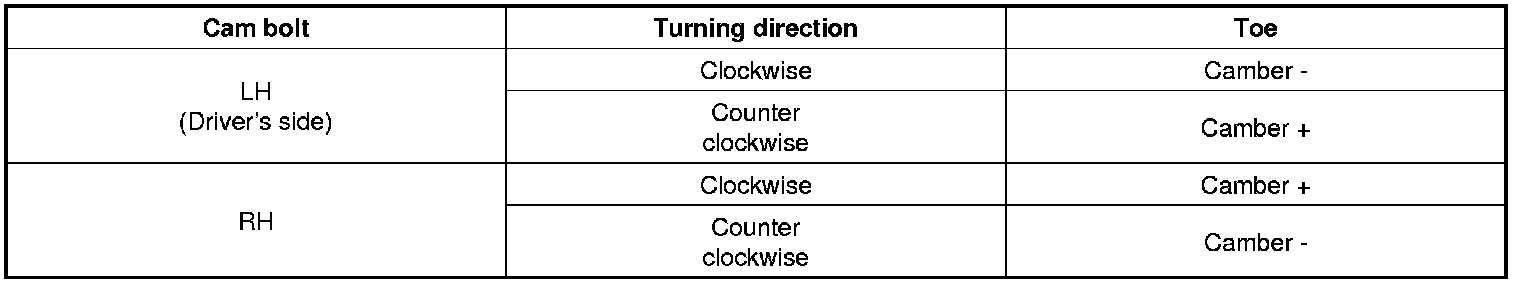 Adjust the camber by turning the cam bolt of the rear lower arm.