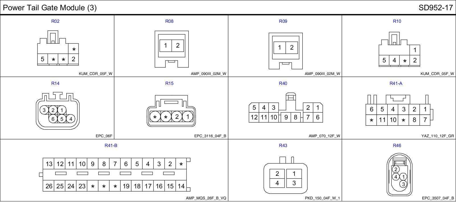Power Tail Gate Module (3) Connector Pin Outs: