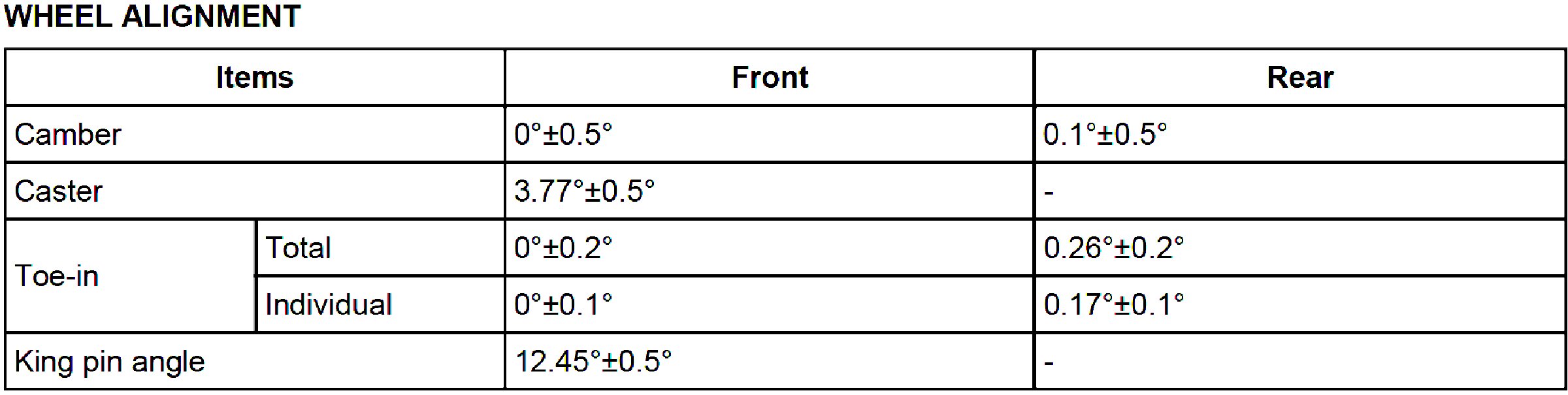Wheel Alignment Specifications