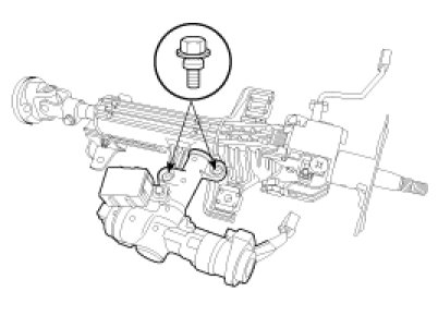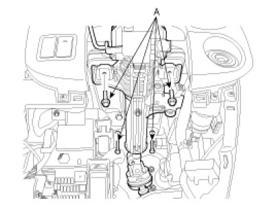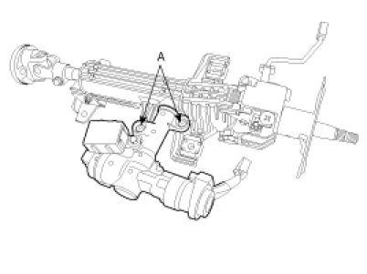 10. Remove the steering column assembly by loosening the steering column mounting bolts and nut (A).