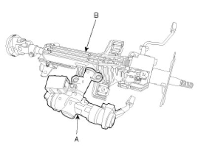 9. Loosen the bolt (A) and then disconnect the universal joint assembly (B) from the steering gear assembly.