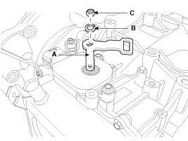 6. Remove the manual control lever (A) and the washer (B) after removing a nut (C).