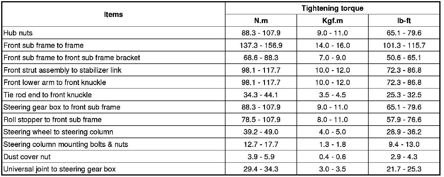 Tightening Torques