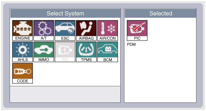 2. Select model and "Smart key system(Button start)" menu if you want to check PDM.