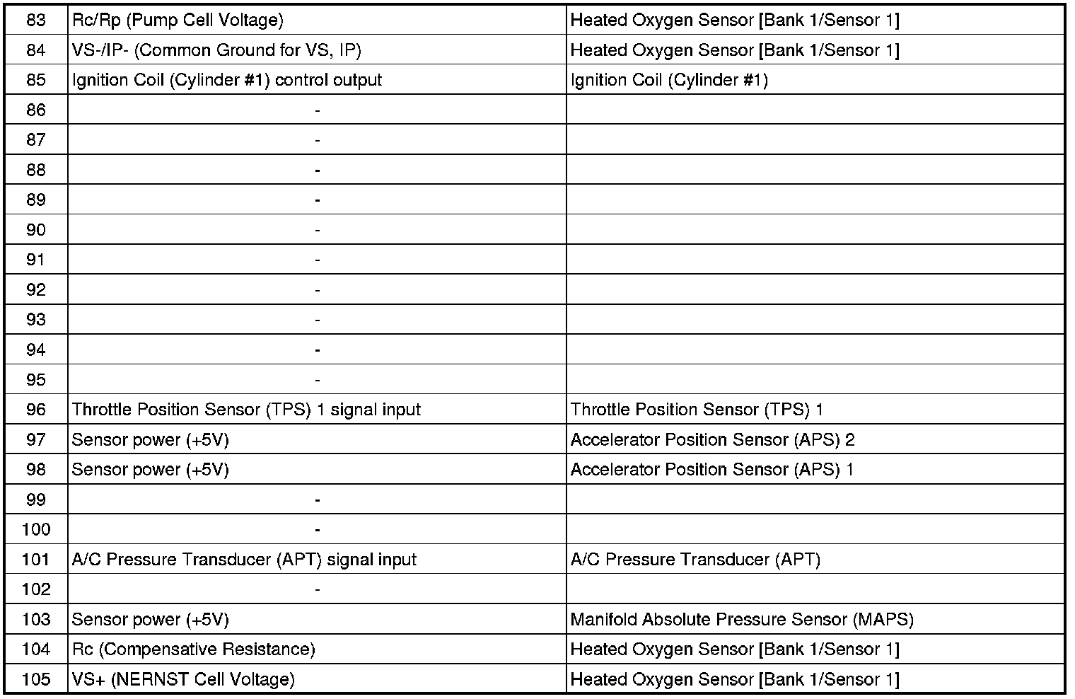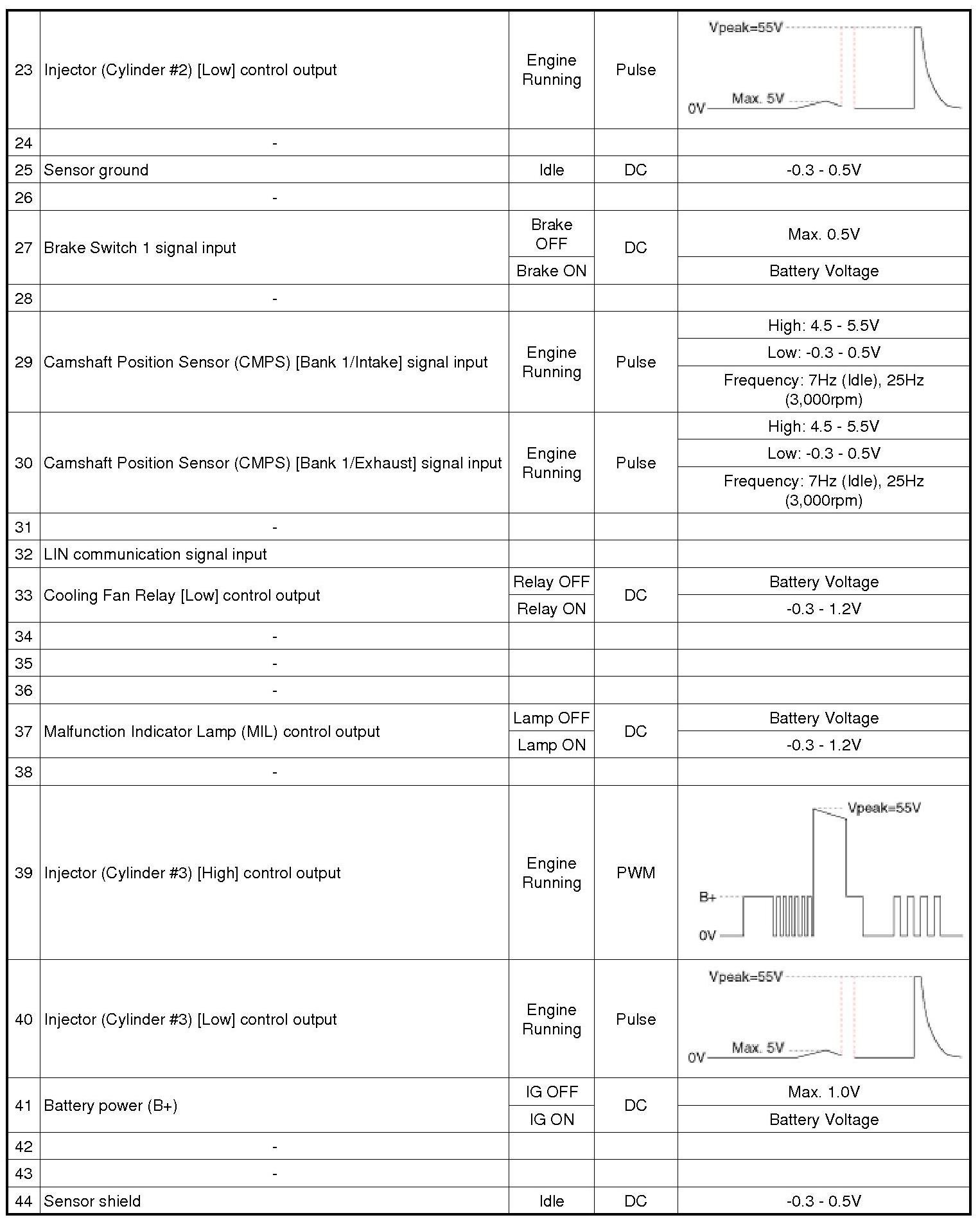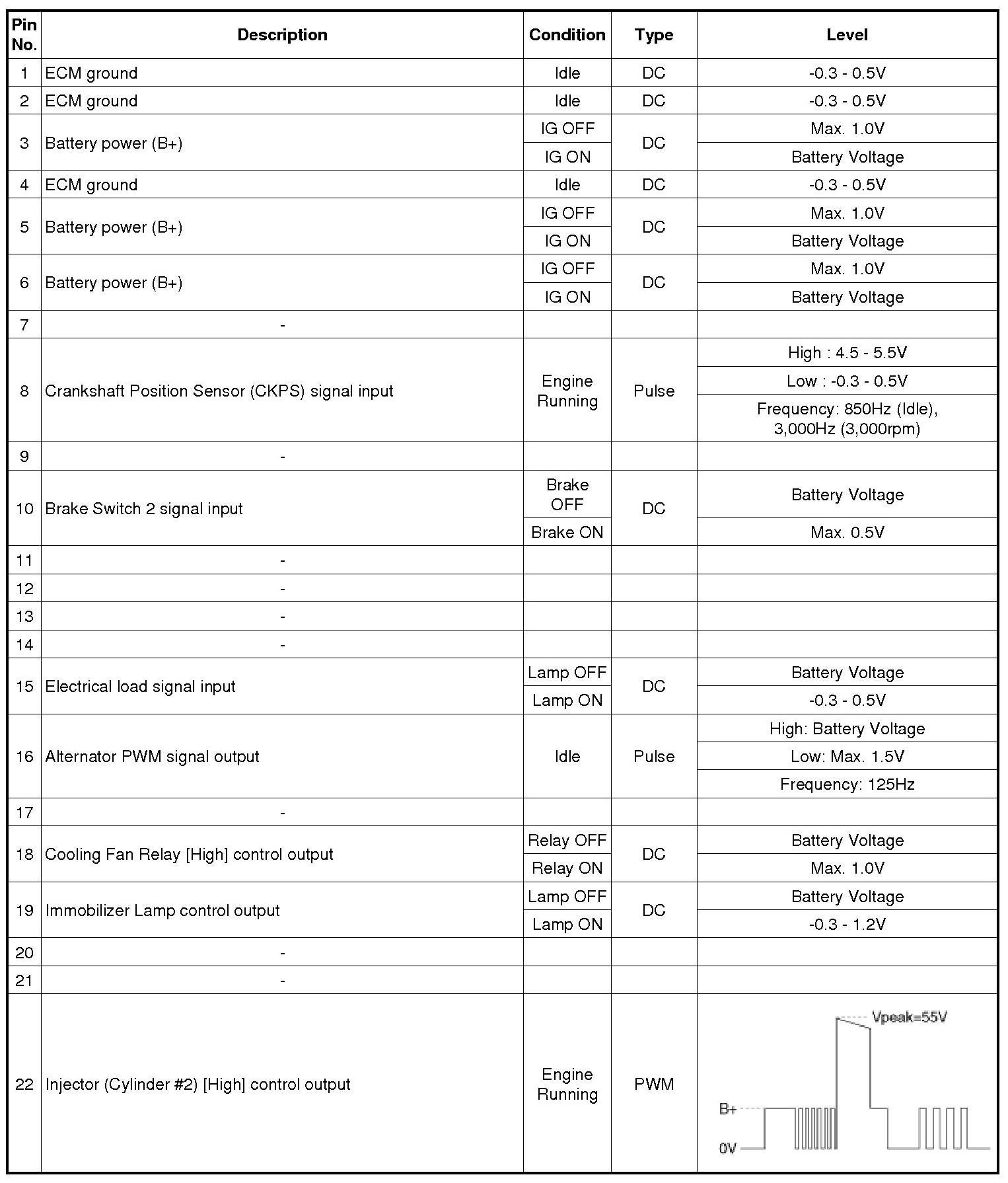 ECM Terminal And Input/Output signal