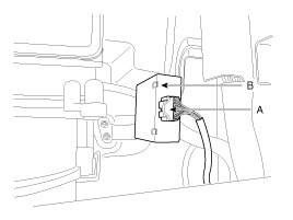 Remove the 4WD ECU(B) after removing the nut and the connector (A).