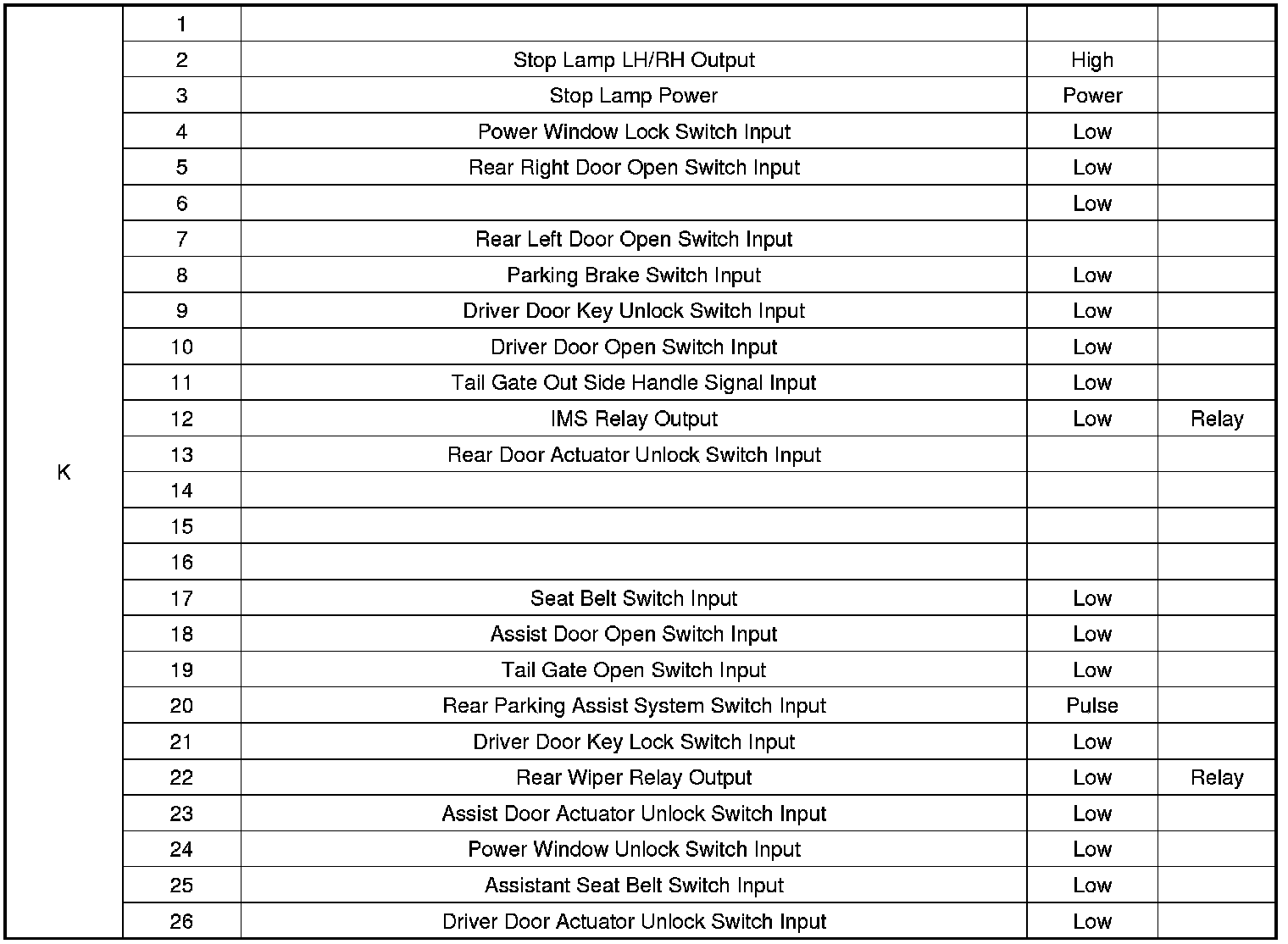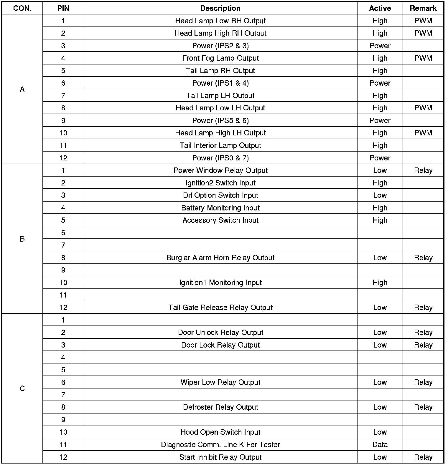 3. To view the input/out value of IPM, use the GDS to check "Current DATA". It provides information of IPM input/output conditions of power supply, turn signal/brake lamp, headlamp, door locks, outside mirror, wiper, auto-light and transmitters etc.