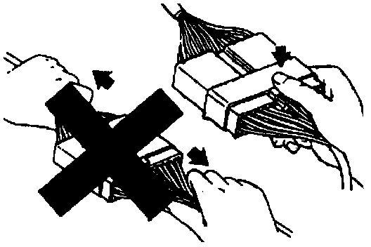 The connector can be disconnected by pressing the lock lever. Do not pull on the wires when disconnecting the connector. Be careful to hold the connector itself when disconnecting it.