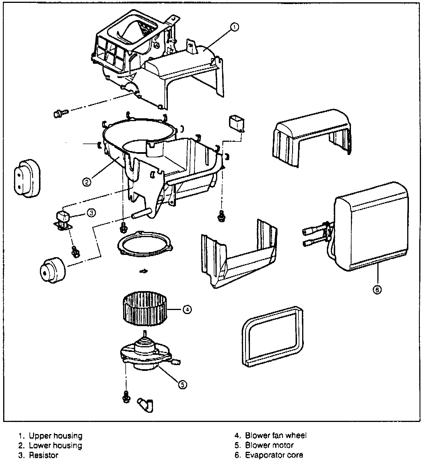 Fig. 10 Exploded View Of Blower Motor/Evaporator Unit: