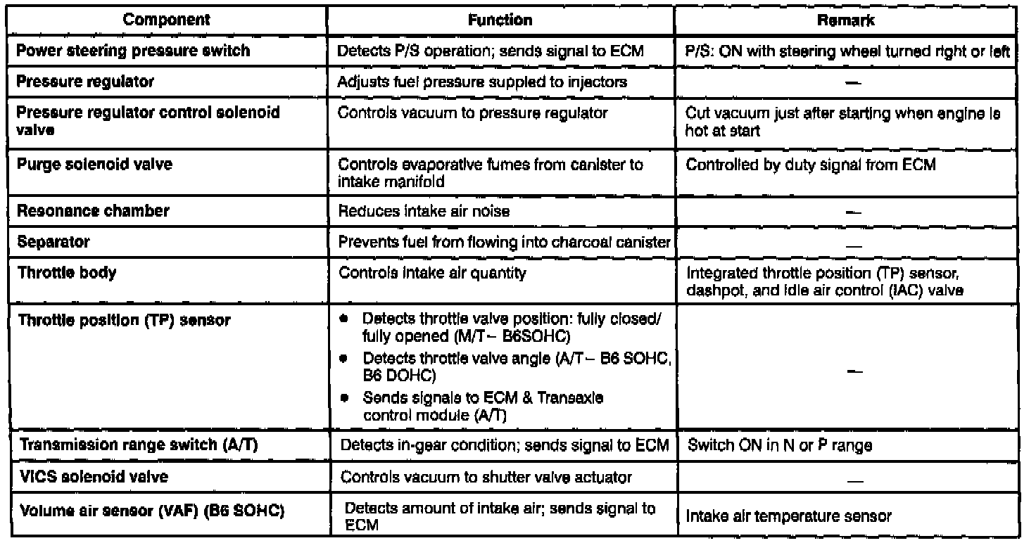 POWER STEERING PRESS. SWITCH - VOLUME AIR SENSOR (VAF)
