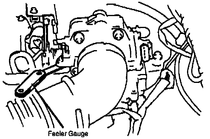 7. If there is continuity, loosen the attaching screw and (with the feeler gauge in place) adjust the throttle position sensor.