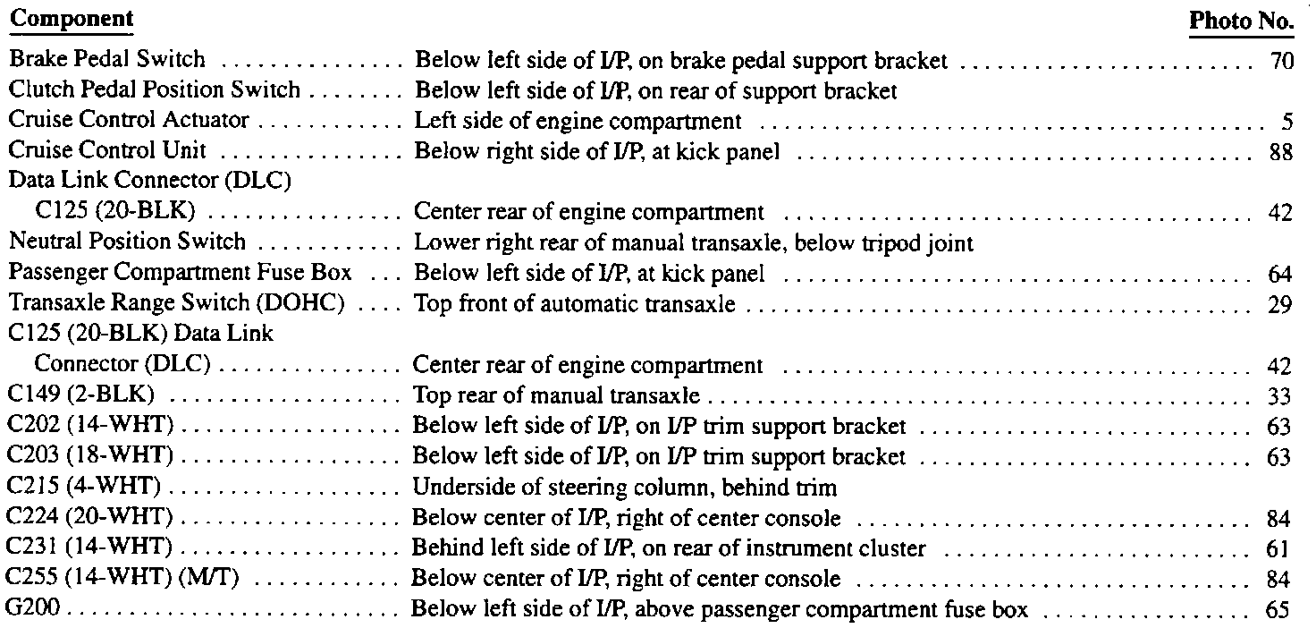 Cruise Control-Component Location Index: