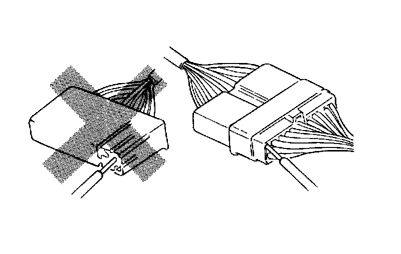 When a tester is used to check the continuity or to check the voltage, insert the tester probe from the wire harness side.