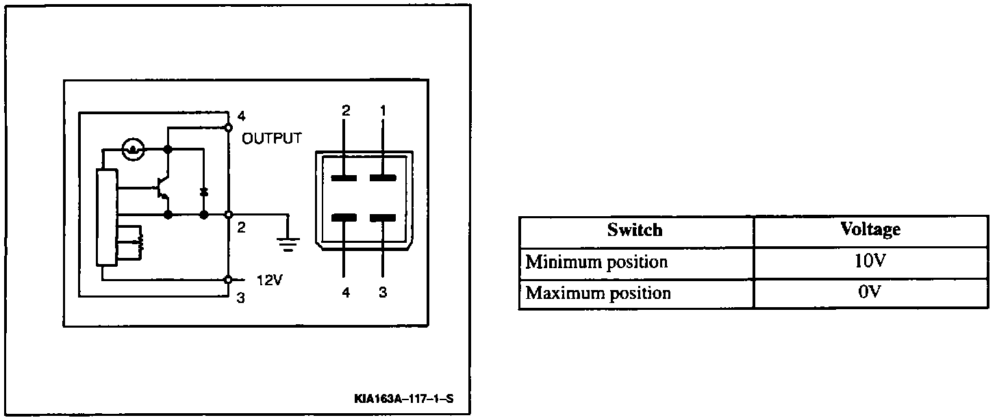 3. Check that the DC voltage at terminal 4 changes as indicated when rotating the potentiometer.