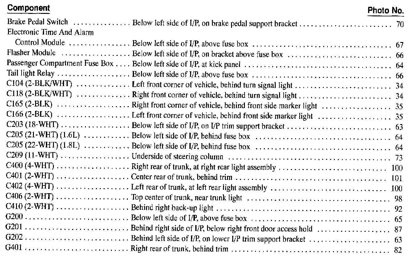 Tail Lamp: Locations
