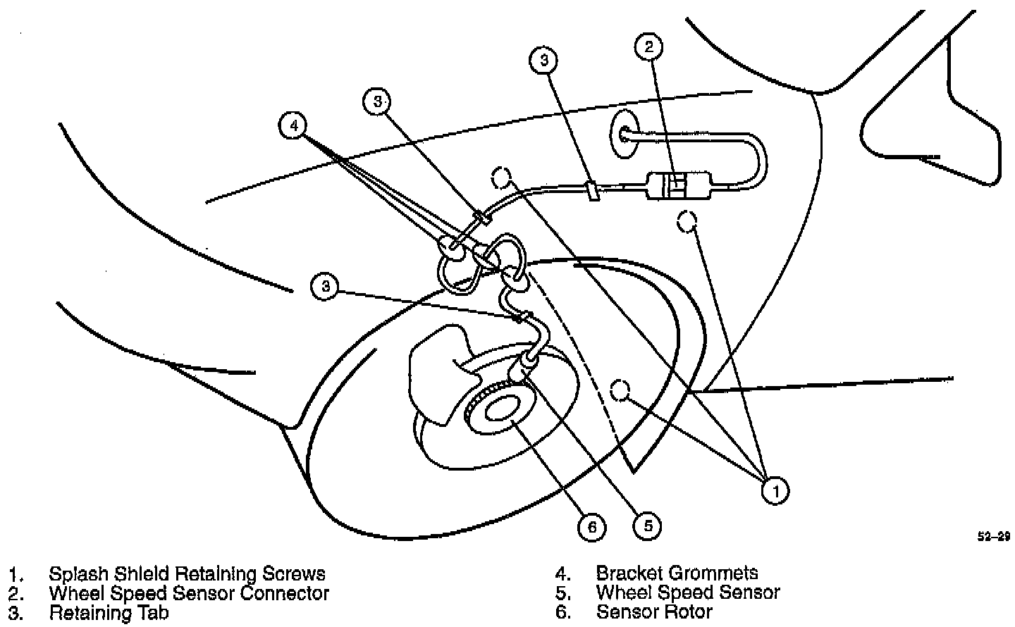 CAUTION: Be certain that the sensor cable is properly routed in wheel-well area. It should be held securely by the three tabs and there can be no excess slack that could allow cable to contact the moving wheel.