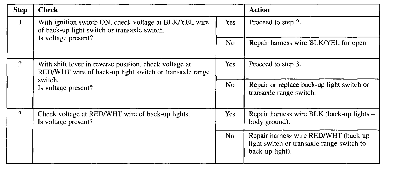 Back-up Lights Do Not Operate