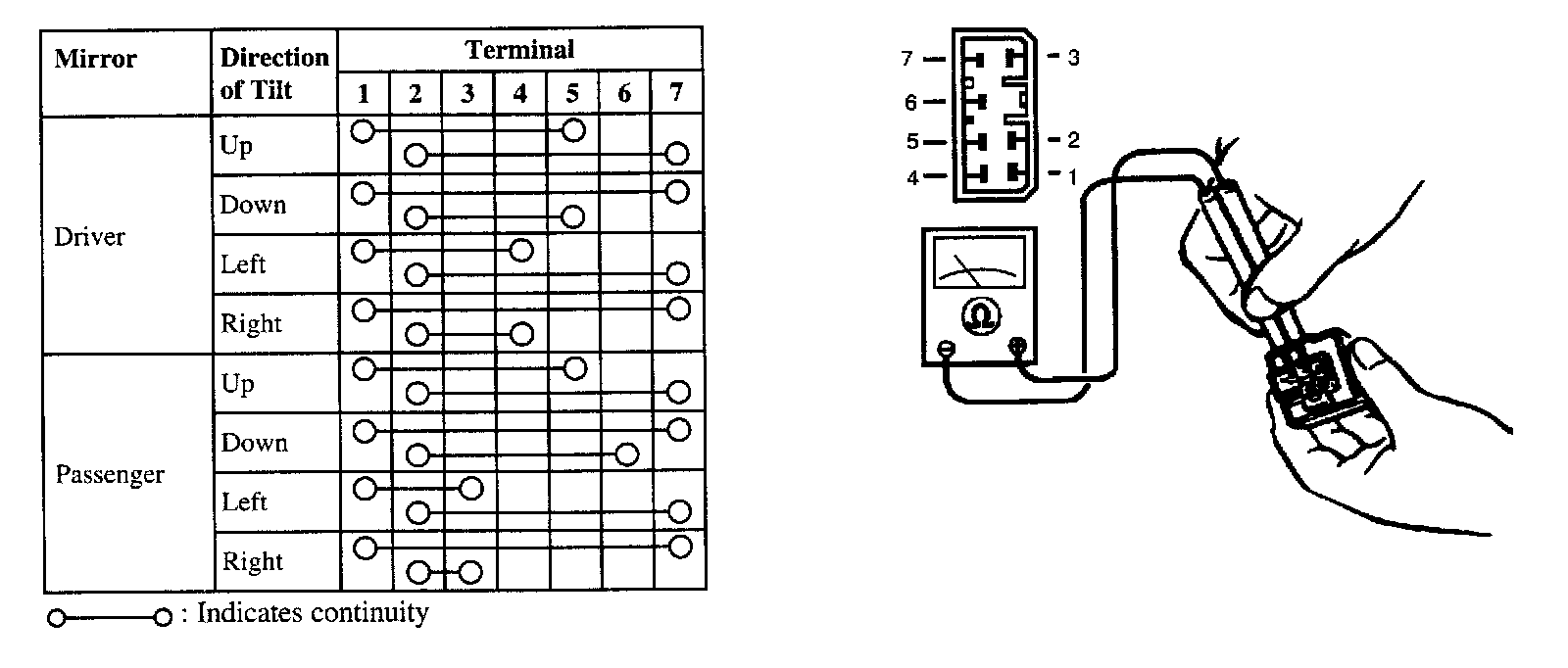 3. If continuity is not as specified, replace the power mirror control.