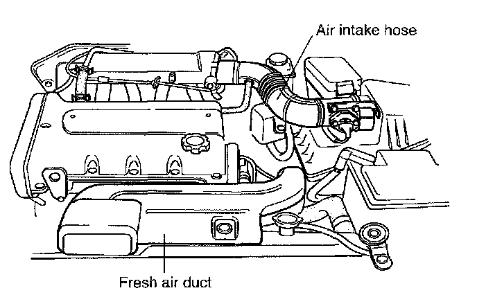 7. Remove air intake hose and fresh air duct.
