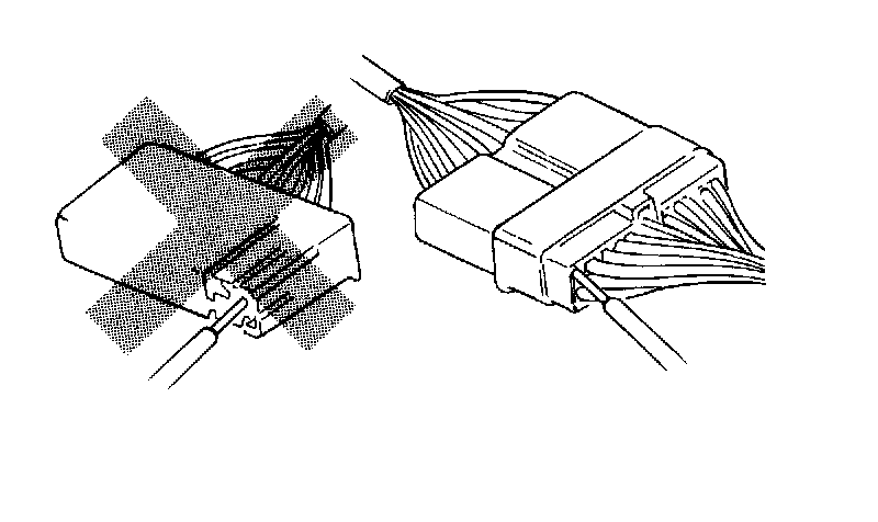 When a tester is used to check the continuity or to check the voltage, insert the tester probe from the wire harness side.