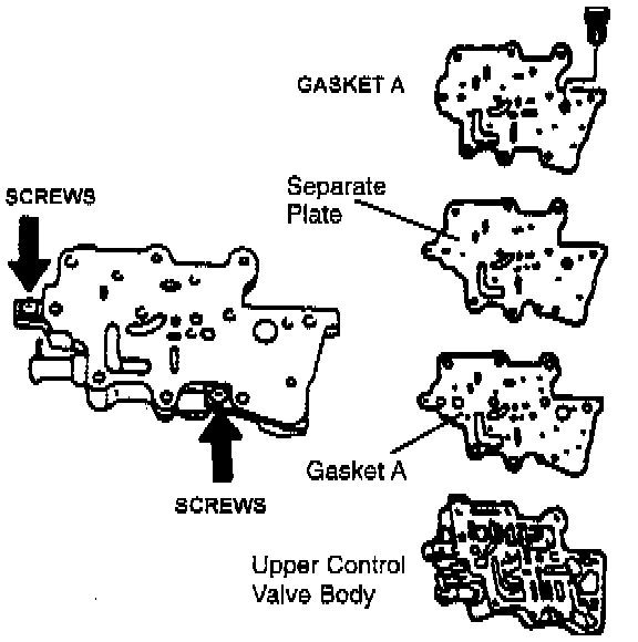 8. Remove gasket B. the upper separator plate, the oil filter and gasket A.