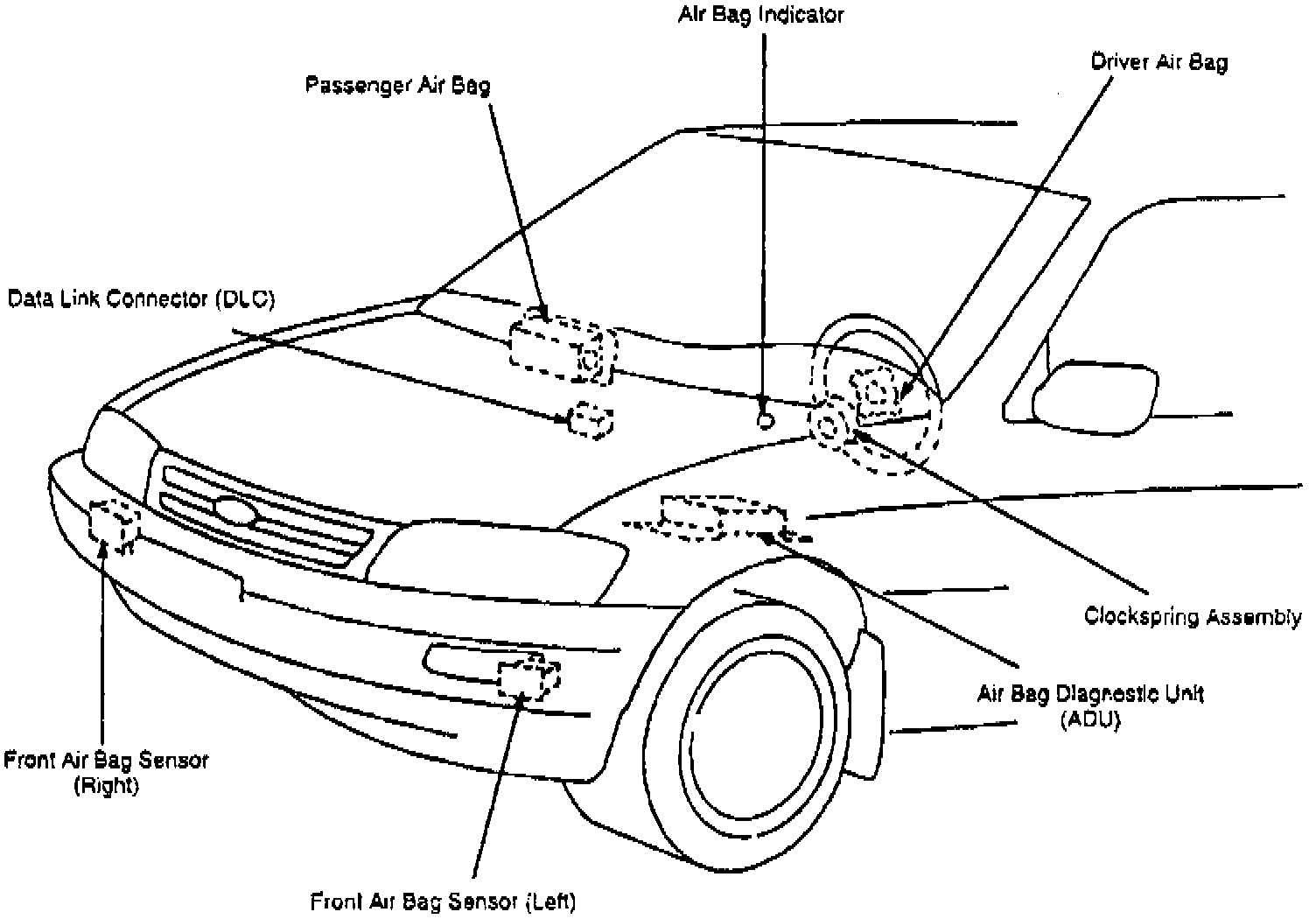 In the Multi-point Air Bag-SRS System (vehicles produced prior to January 9, 1996), the collision-sensitive sensors are located behind the front bumper. The Single-point Air Bag-SRS System (vehicles produced January 9, 1996 and later) have the collision-sensitive sensors located within the air bag diagnostic unit.