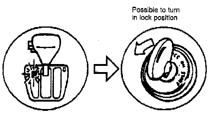 6. Verify that the ignition key cannot be turned to LOCK position.