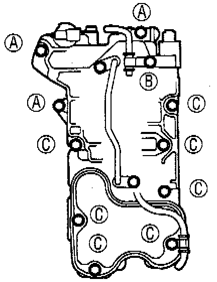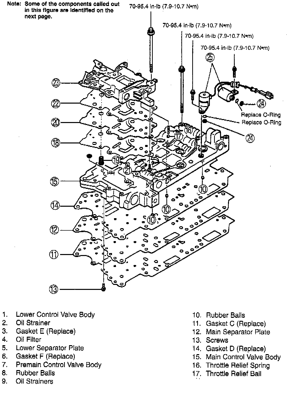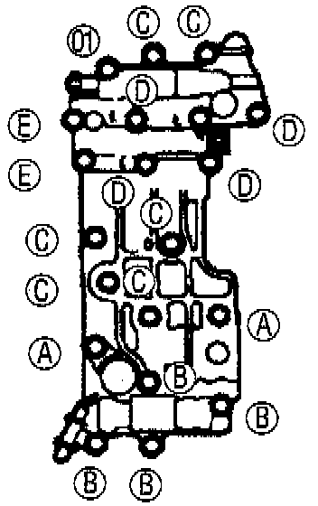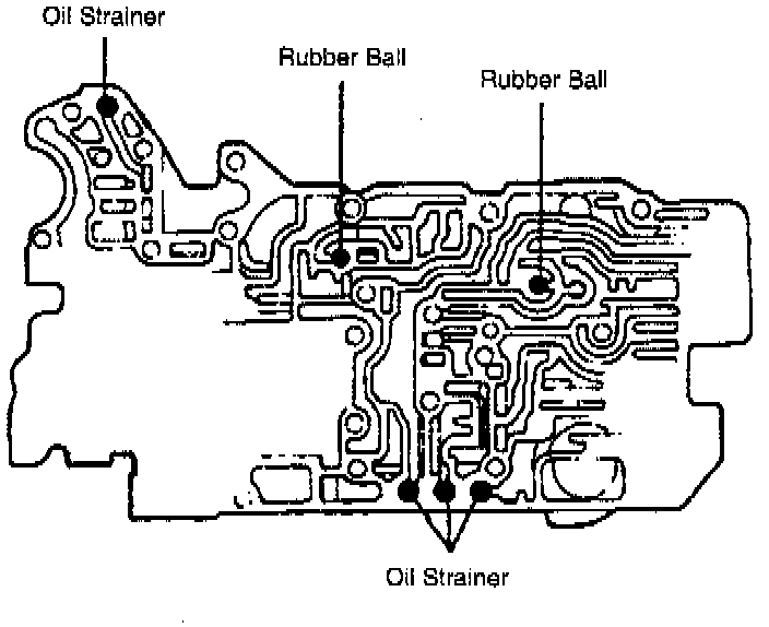 1. Install the oil strainer into the lower control valve body, refer to RUBBER BALL AND OIL STRAINER INSTALLATION POSITIONS.
