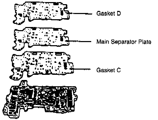 7. Set the new gasket C, main separator plate, and the gasket D onto the main control valve body.