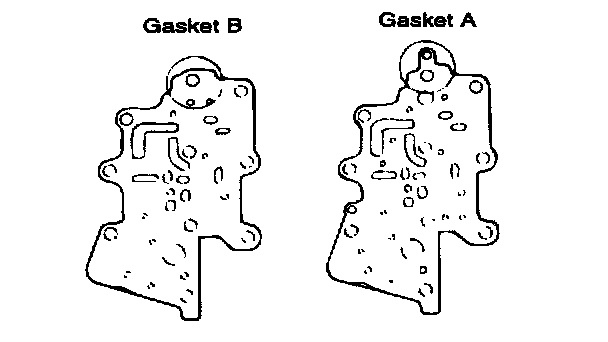 NOTICE: Gasket A and gasket B are not interchangeable. They are identified by their shape in the area designated in the illustration.