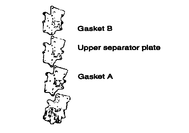 13. Set the new gasket A, upper separator plate, and new gasket B onto the upper control valve body.