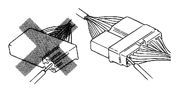 When a tester is used to check the continuity or to check the voltage, insert the tester probe from the wire harness side.