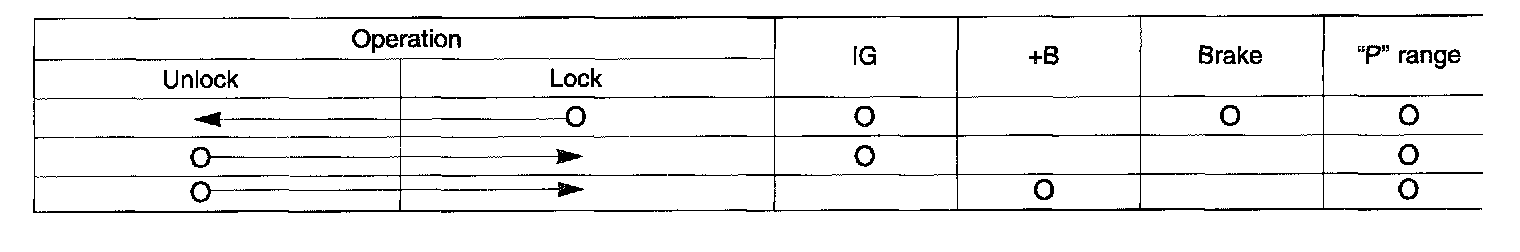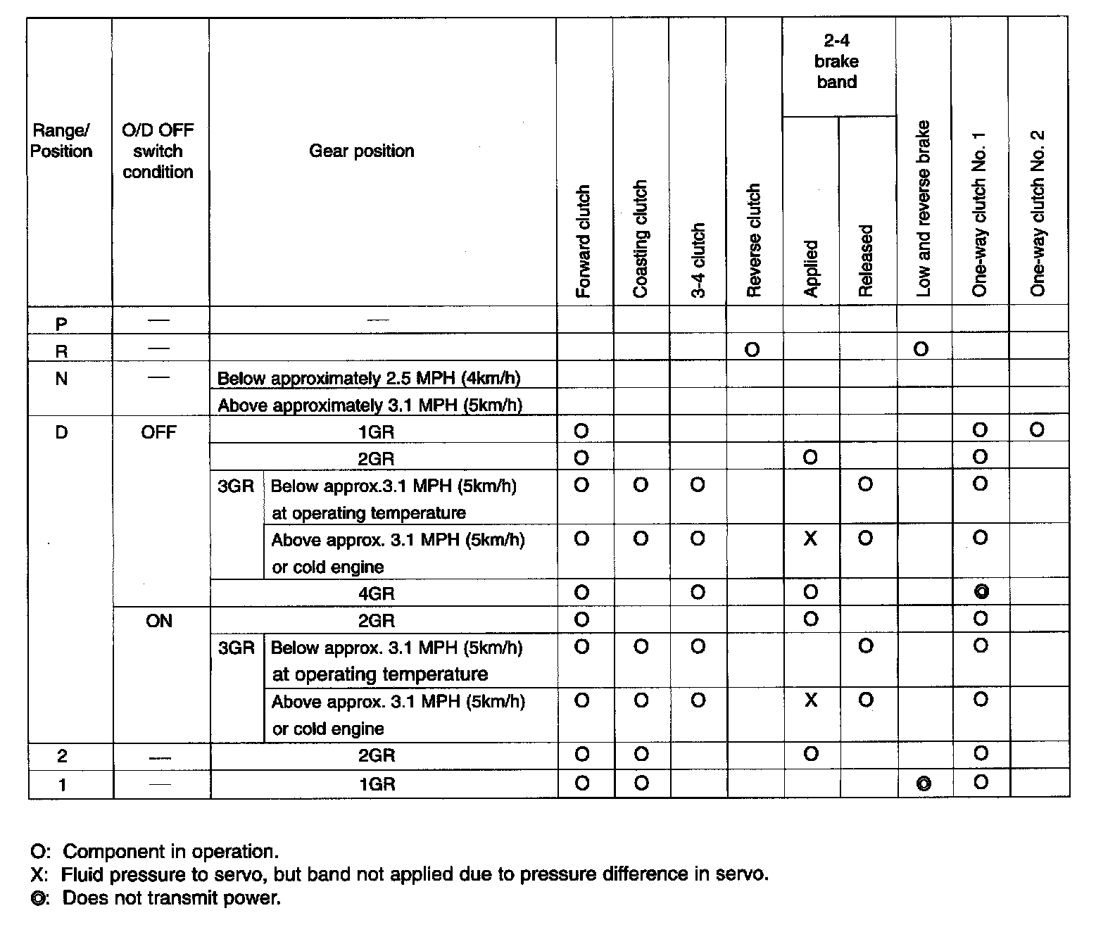 COMPONENT OPERATION TABLE: O/D OFF SYSTEM