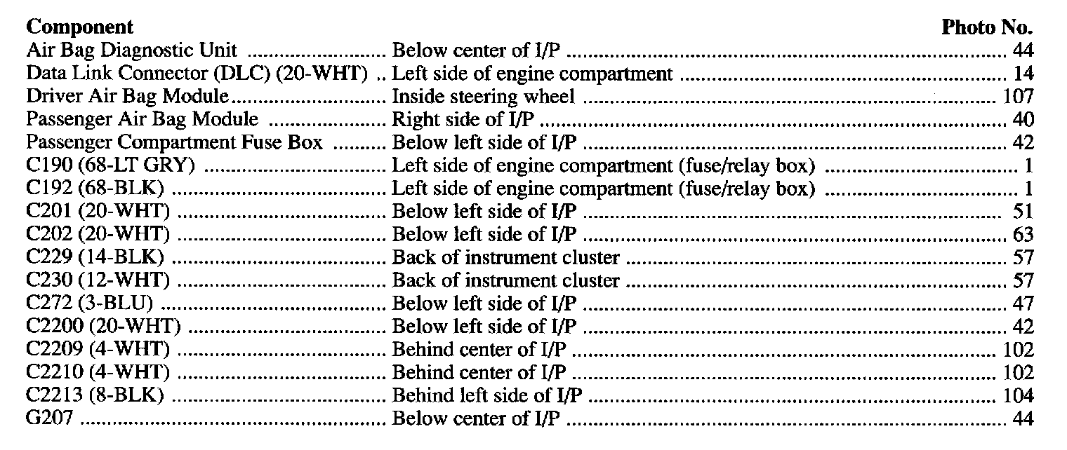 Air Bag Systems: Locations