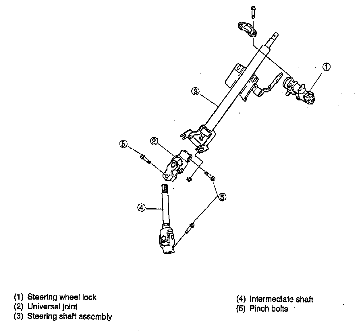 4. Remove two universal joint pinch bolts from steering column assembly and intermediate shaft.