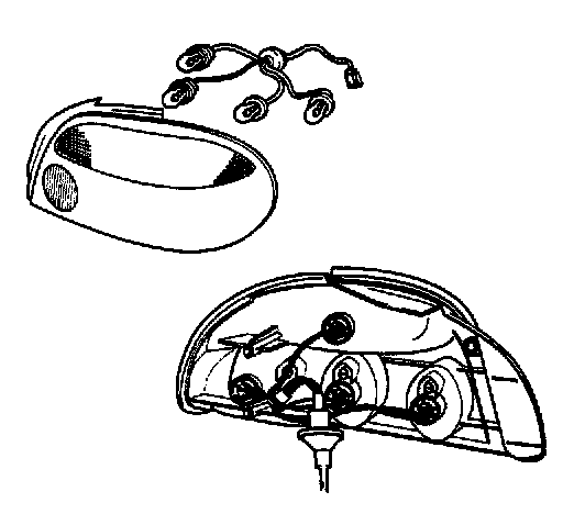 4. From outside of vehicle, grasp combination light assembly, push combination light assembly outside and pull from vehicle using care not to damage gasket and combination light assembly.