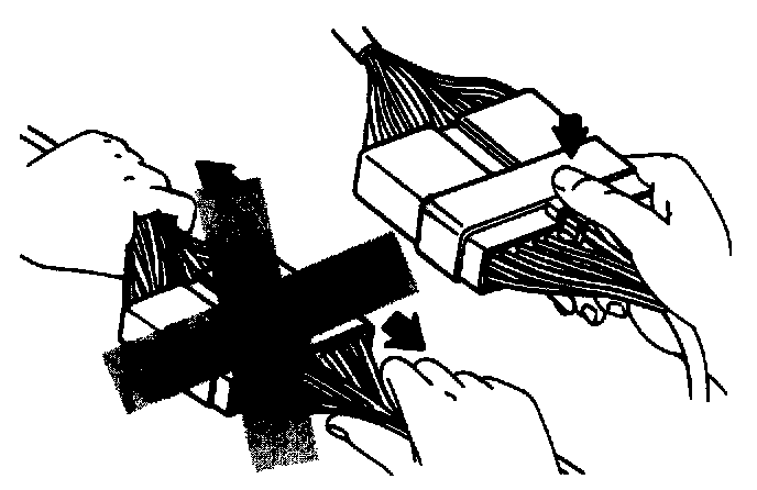 The connector can he disconnected by pressing the lock lever. Do not pull on the wires when disconnecting the connector. Be careful to hold the connector itself when disconnecting it.