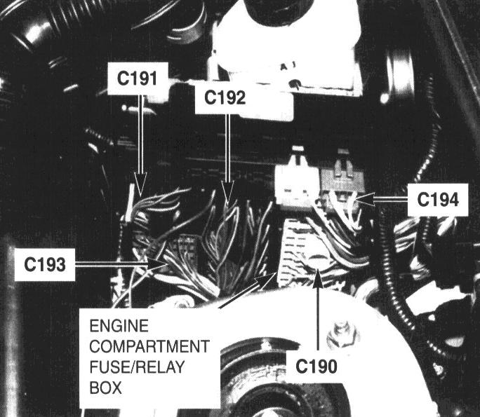 Left side of engine compartment (fuse/relay box)